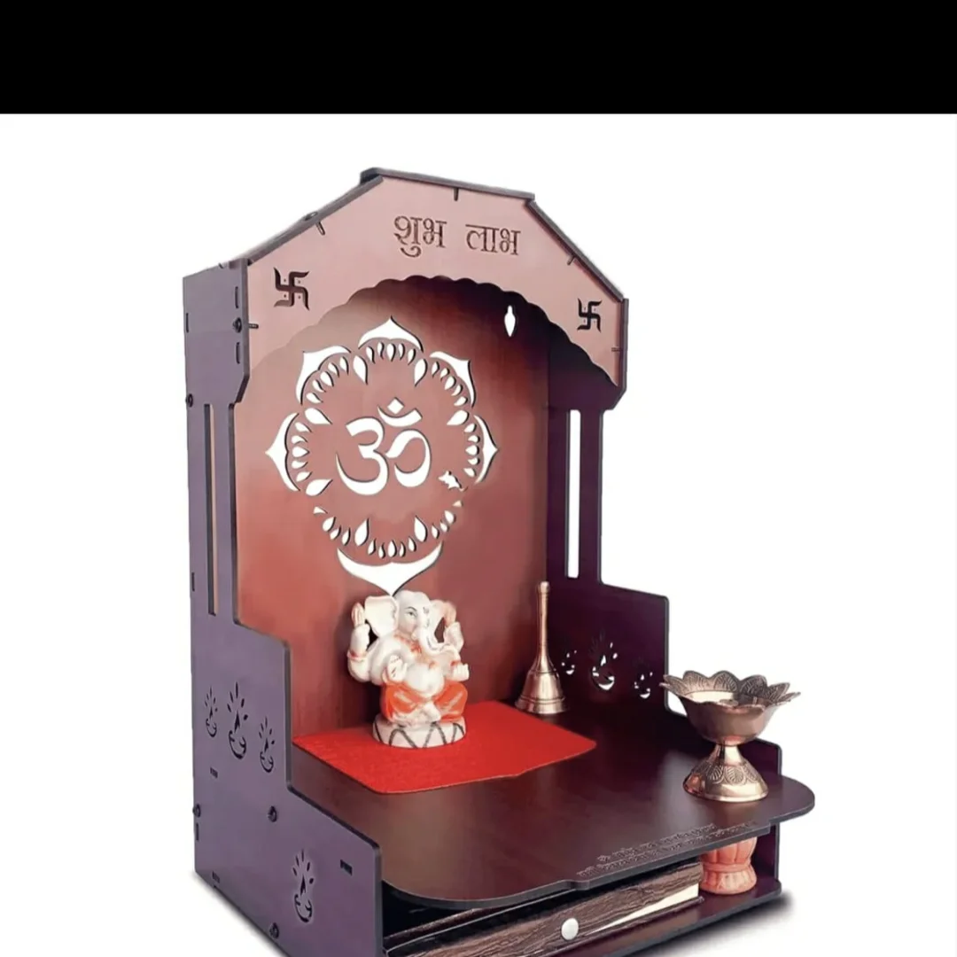 This beautiful wooden puja mandir is a perfect addition to any home or temple. Crafted with intricate carvings and a traditional design, this mandir offers a serene space for prayer and meditation. The mandir features multiple shelves for displaying deities, idols, and other religious items. It also has a drawer for storing puja supplies. The mandir is made from high-quality wood and is finished with a protective coating to ensure durability and longevity.